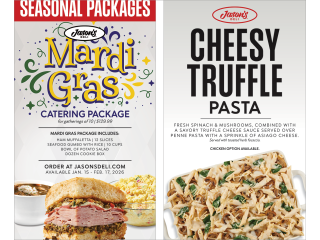 250 per package Front Design: Mardi Gras CateringBack Design: Cheesy Truffle Pasta..